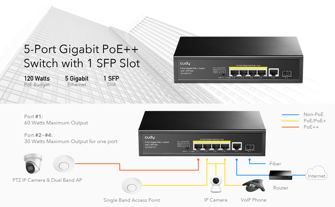 CUDY GS1005PTS1 6-Port 10/100/1000 BASE-T Gigabit Ports, 12